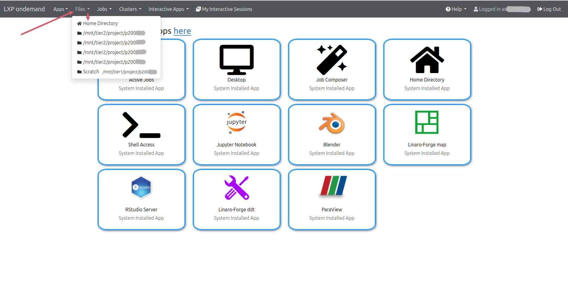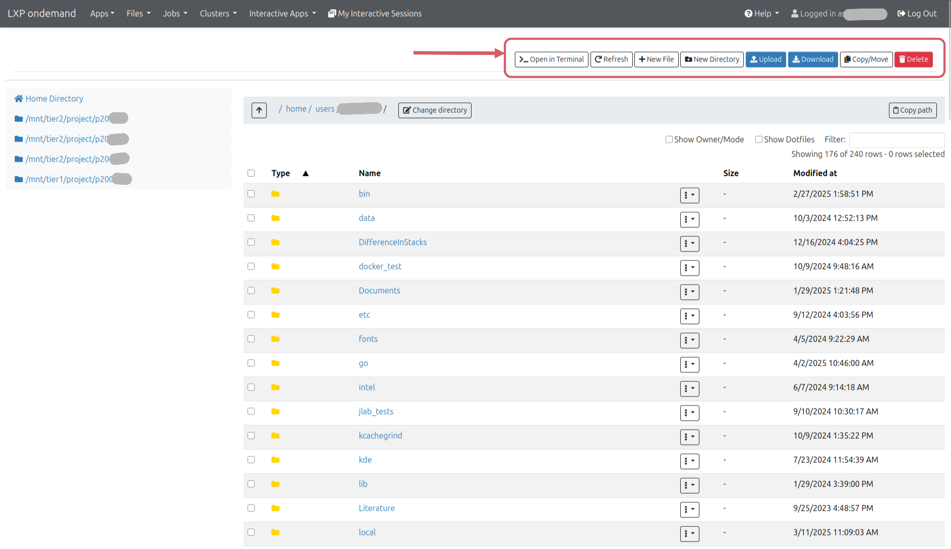 Open Ondemand allows user to manage their data from their Web browser. This should ease any data access and manipulation from their local machine. Simple steps to access the user home and project directories are described in this section.